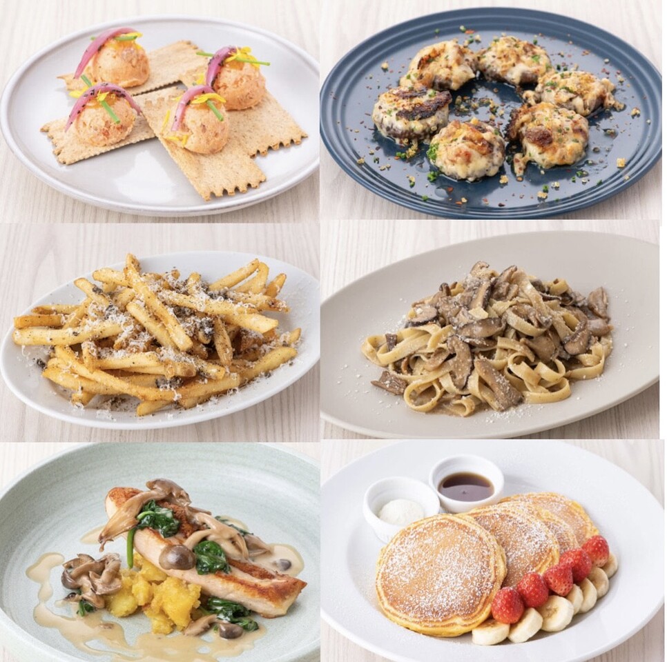 (前菜4種、パスタ、ステーキ、デザートのパンケーキへ&スパークリングワインを含む フリードリンク付き。90分ラストオーダー)