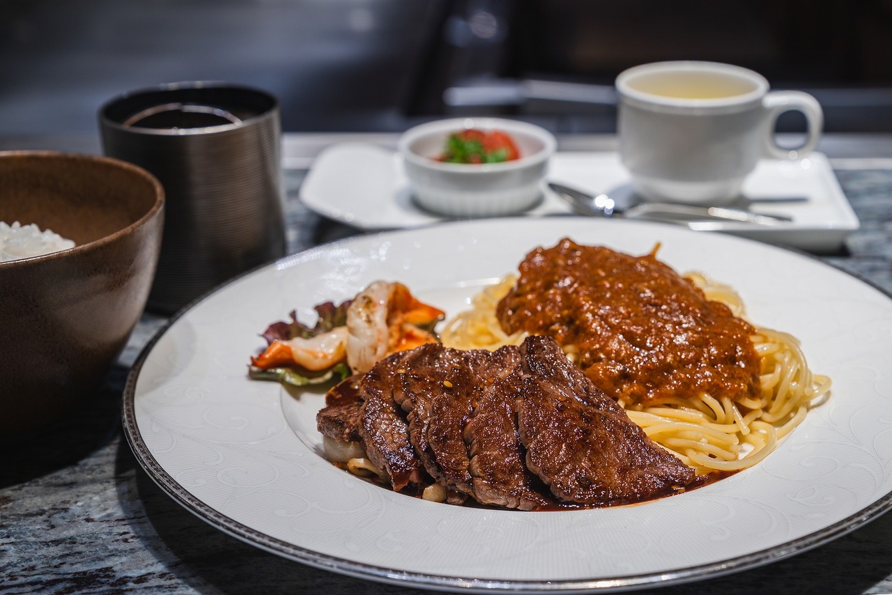 ・プレート盛り(スパゲッティミートソース/宮崎牛フィレのスライス/海老)