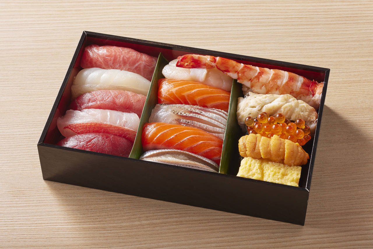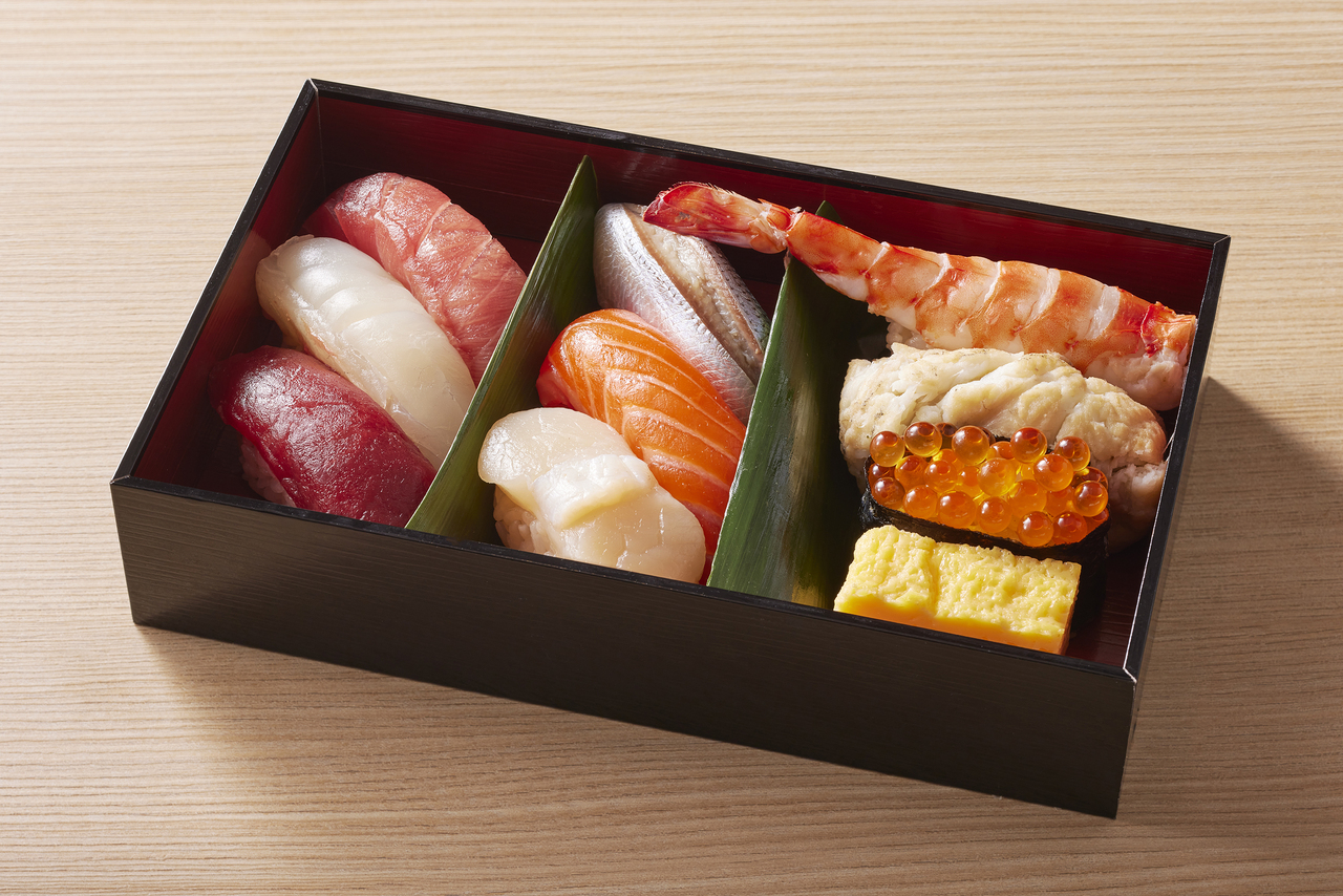 Beautifully packed Edomae sushi, a delicacy for a luxurious time spent by yourself.
