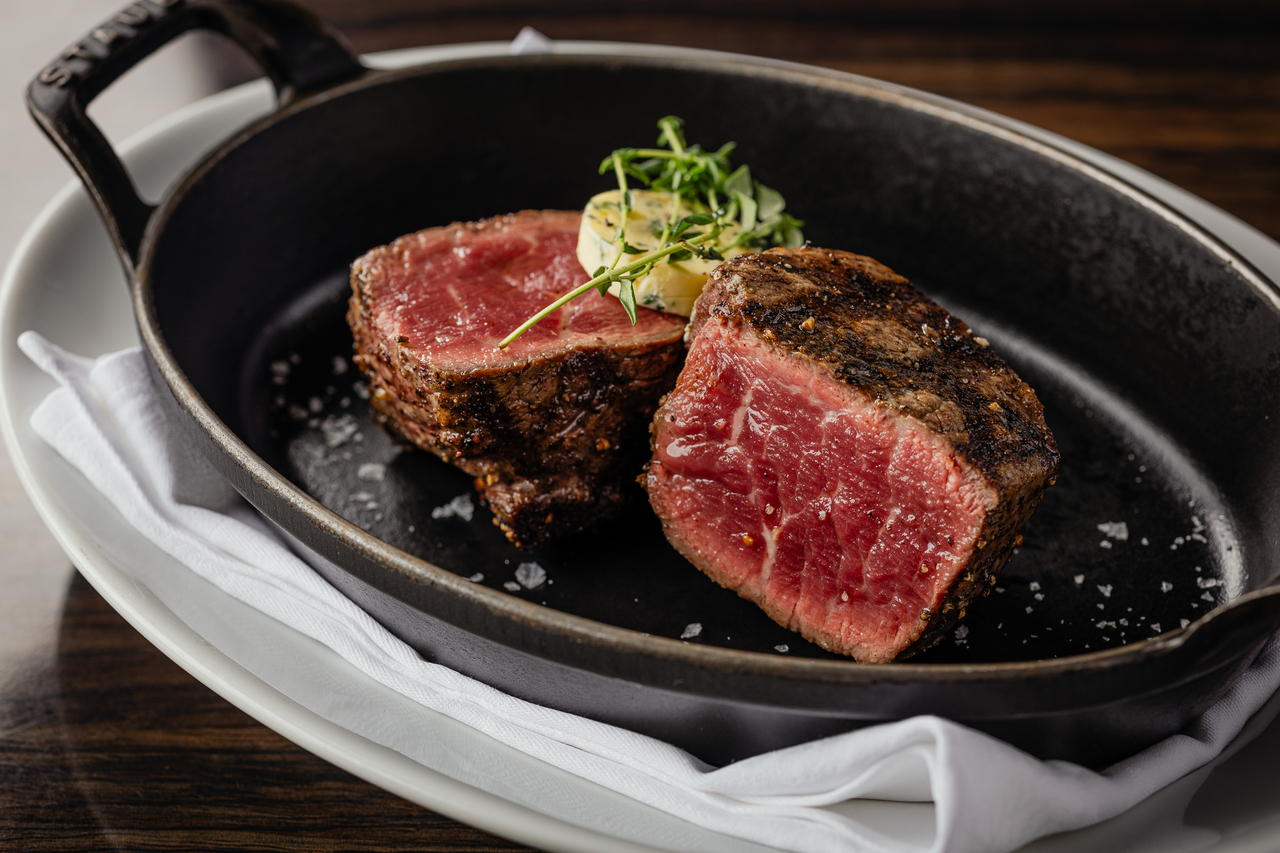 キャビアを添えた前菜やロブスターグリル、メインはドライエイジングTボーンステーキ700gと