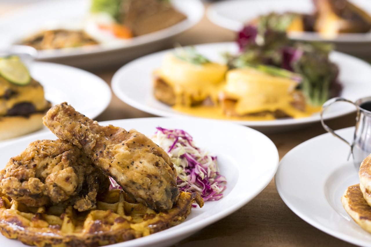 [Course contents] 1 welcome drink Appetizer Popover Salmon LOX Salad Cream cheese Fried capers Main chicken waffle or meatloaf Half dessert Pancake Ricotta and blueberry pancake Chocolate banana pancake Apple pancake 1 out of 3 types Choice" after-dinner cafe coffee or tea
