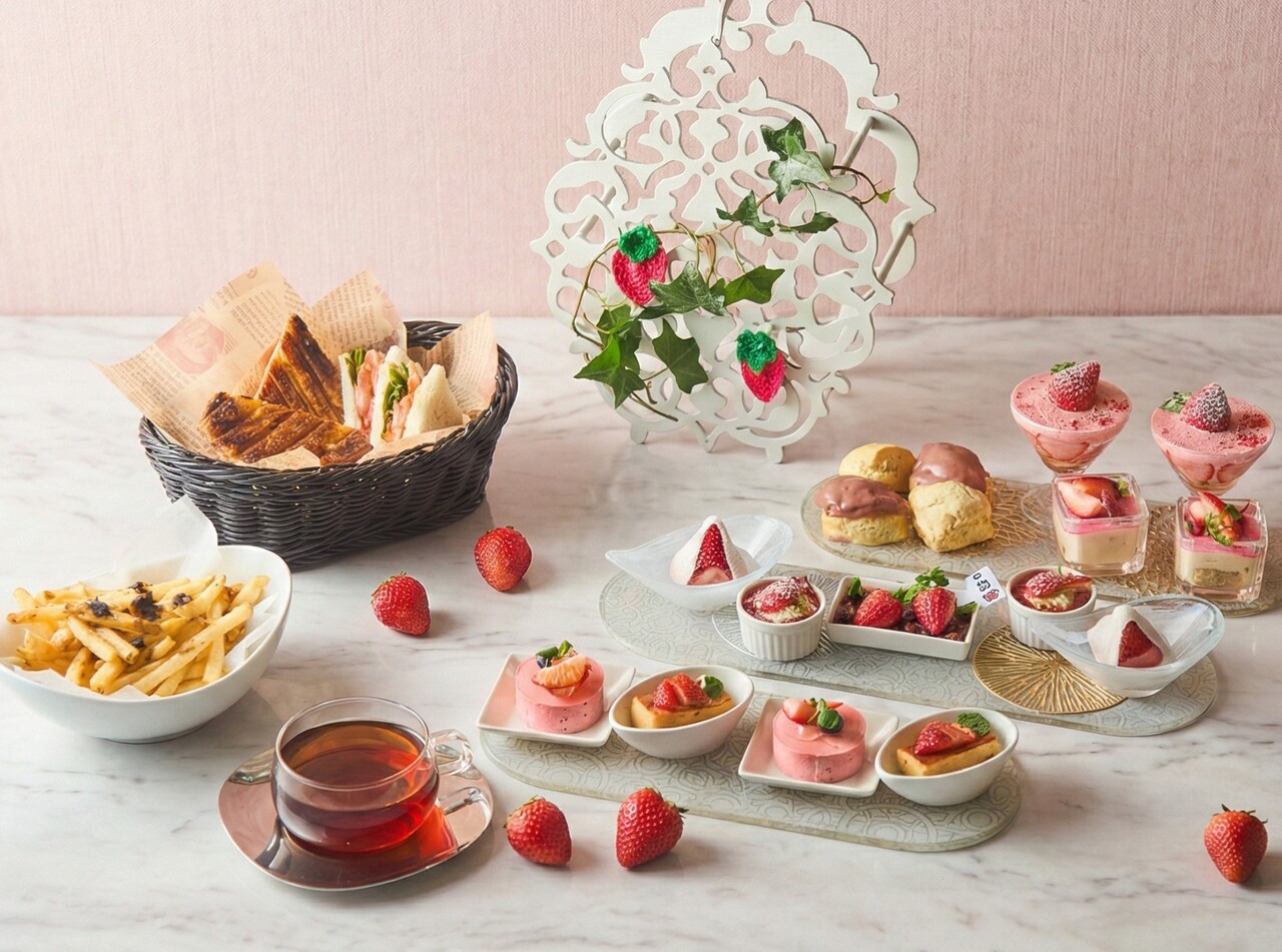 Featuring seasonal strawberries as the star, this spring-limited afternoon tea offers a diverse selection of sweets—from classics like glass shortcake and strawberry daifuku to strawberry and rose mousse and strawberry and cherry blossom tiramisu. Paired with two types of scones, a croissant hot sandwich, and savory smoked salmon, it's a splendid spread perfect for celebrations or special treats.