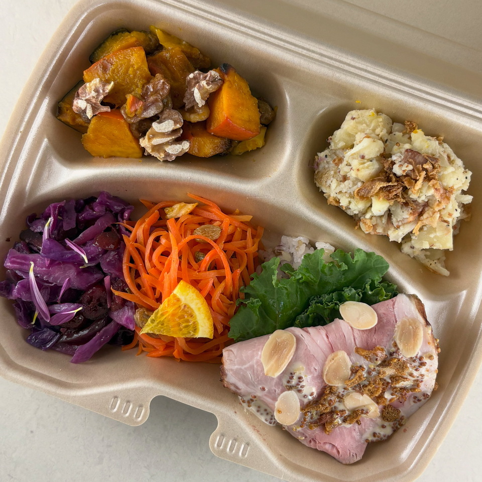 ヘルシーな前菜と主菜で構成された二段重(2,3名分)となります