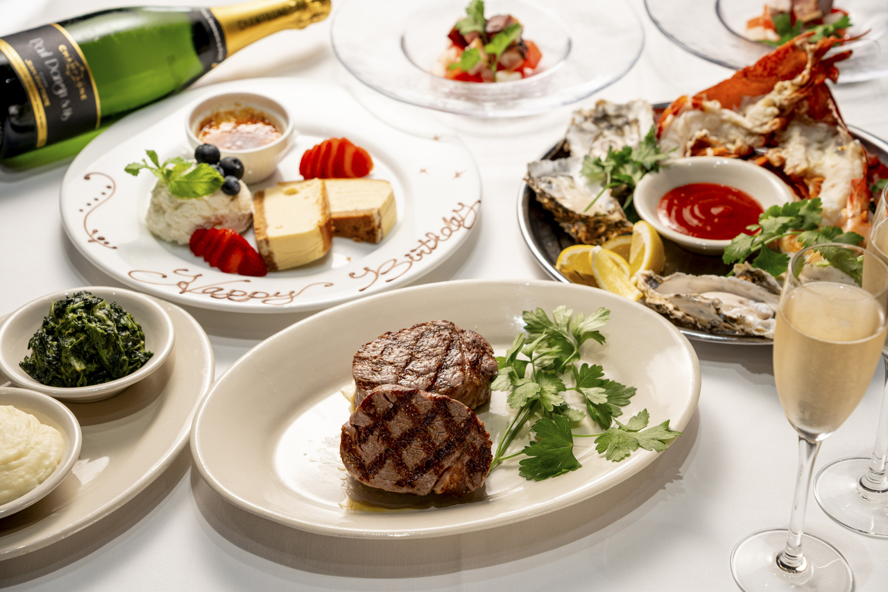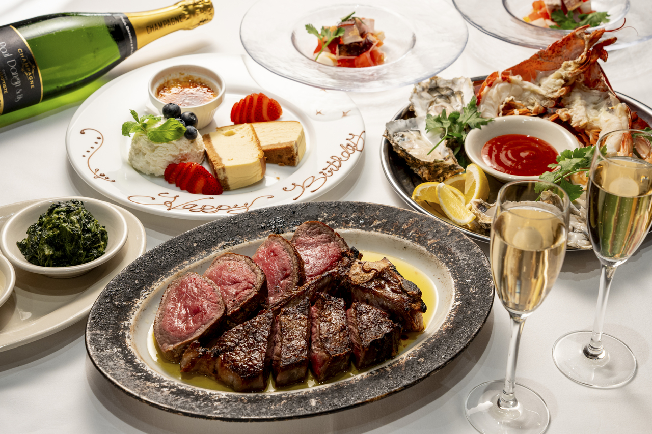■APERITIF Champagne or Non-alcohol Champagne ■SALAD Choice of Caesar Salad or Mixed Green Salad ■SOUP Choice of Todays Soup or French Onion Soup Please choose from ■MAIN New York Sirloin Steak(Bone in 300g) Prime New York Sirloin Steak (Bone in 300g) *You can change to the following steaks for an additional fee. Filet Mignon 200g +1,500 yen Porterhouse Steak Porterhouse Steak (2 (from 2 people) +3,500 yen Emperors Steak (from 2 people) +5,500 yen ■SIDE DISH Potato & Vegetable The main dish comes with potatoes and vegetables ■DESSERT Anniversary Dessert Assortment Dessert plate (anniversary specification) ■DRINK Coffee or Tea ■BREAD Bread *A 10% service charge will be added to the additional charge for the main choice.