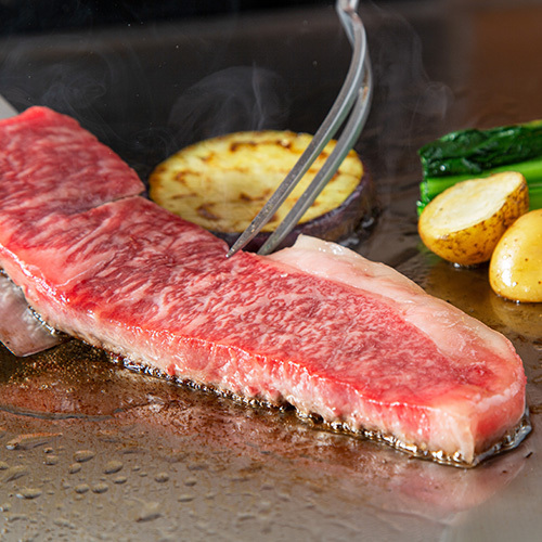 【ランチ&ディナー】「静岡そだちロース」と「黒毛和牛フィレ」、フォワグラや焼き野菜など、目の前の鉄板で焼きあげます。