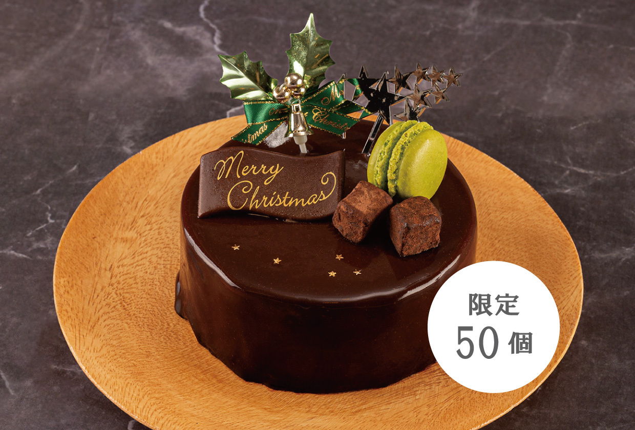 大人なクリスマスをイメージして、少しビターなチョコレートケーキをご用意。