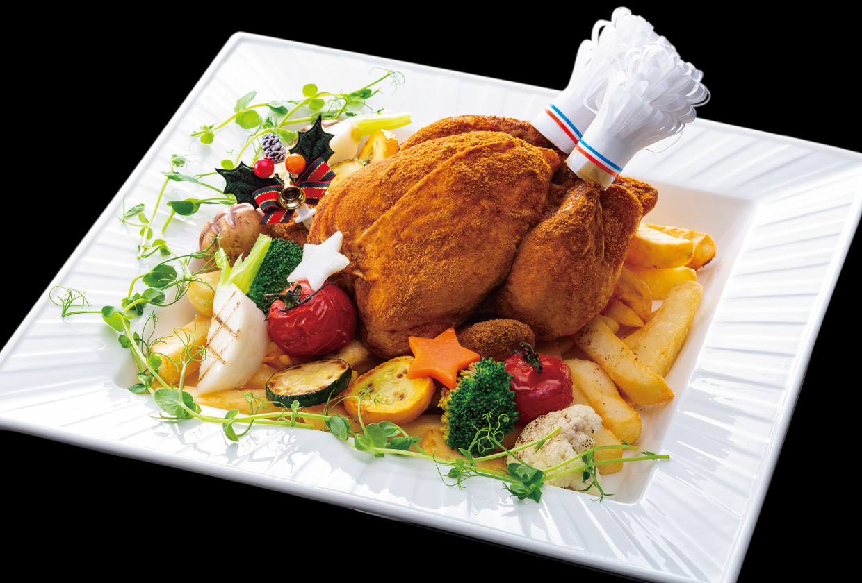 国産鶏を1羽丸々使いスパイスの利かせたローストチキンをご用意いたしました。