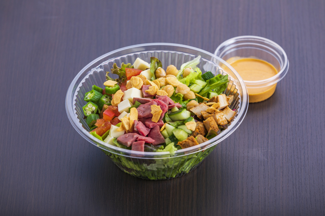 “A luxurious muffin sandwich filled with plump shrimp and smoked salmon, accompanied by two chef’s choice side dishes. Enjoy this special set for takeaway as well.”