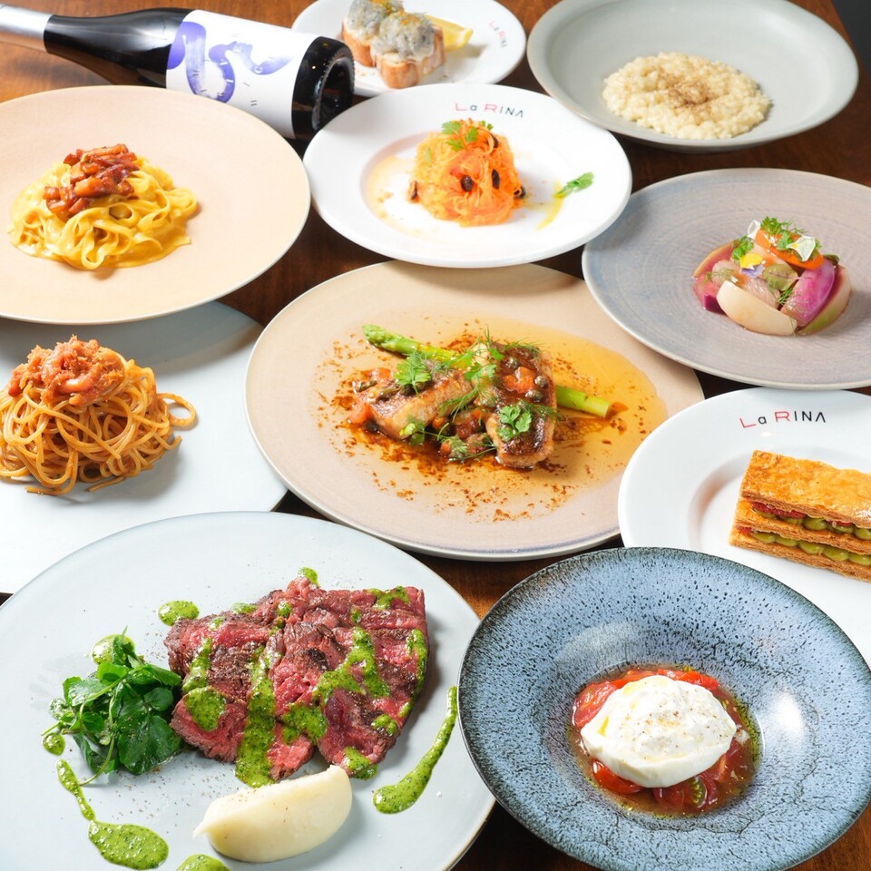 一口前菜・前菜・パスタ・メイン・デザート+コーヒーのラ・リナをお楽しみいただけるフルコース。