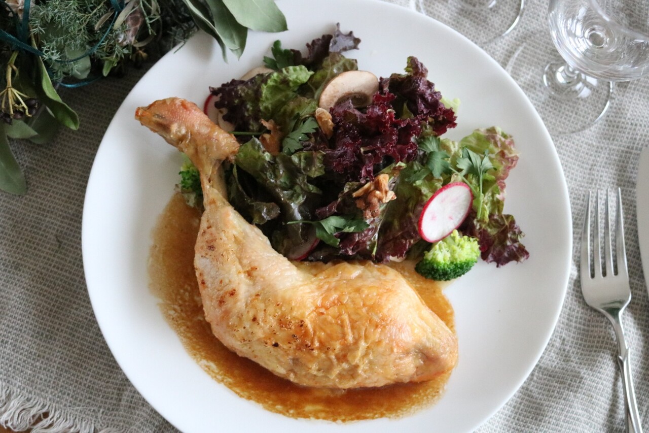 ローストチキン きのことレモンのピラフ詰め 冬のサラダ添え