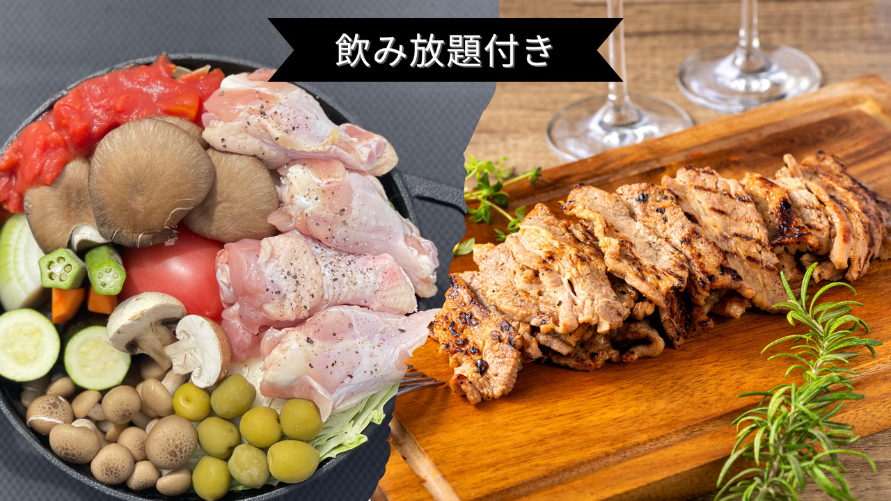 ②手ぶらプランご利用の場合、各セットメニュー、およびアルコール飲み放題・ソフトドリンク飲み放題を人数分の数量を選んでください。