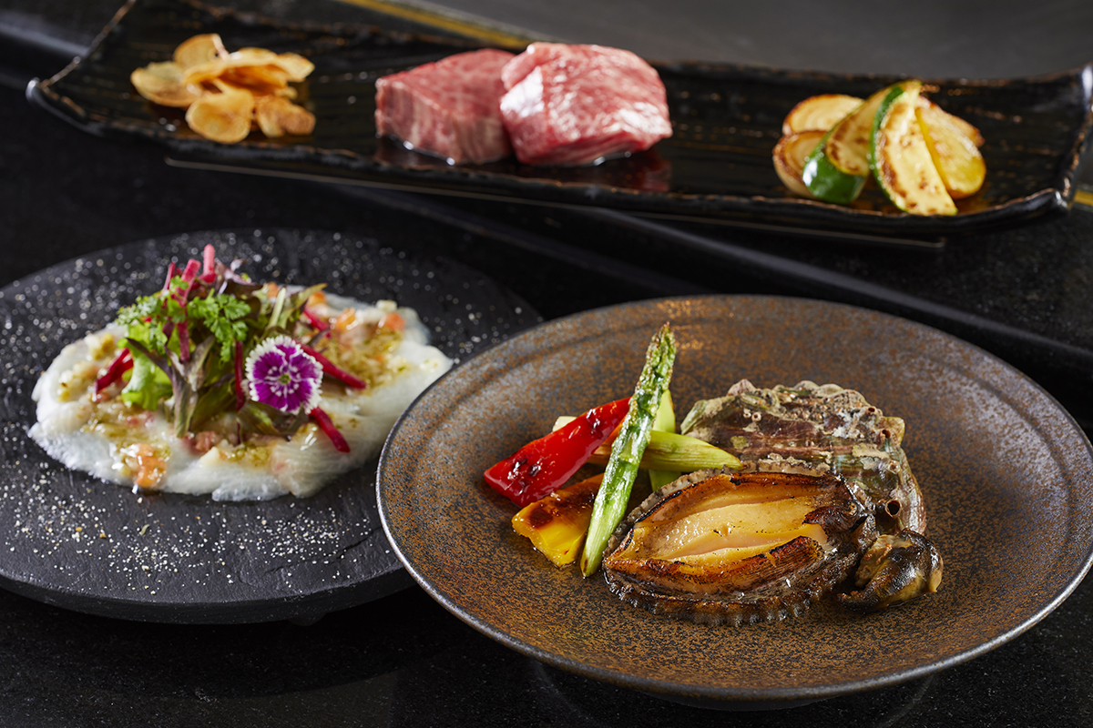 Indulge in an interactive culinary theatre featuring 100g of high-quality Japanese F1 beef tenderloin, paired with salad, seasonal seafood, soup, seasonal vegetables, garlic fried rice, miso soup & pickles, plus dessert.