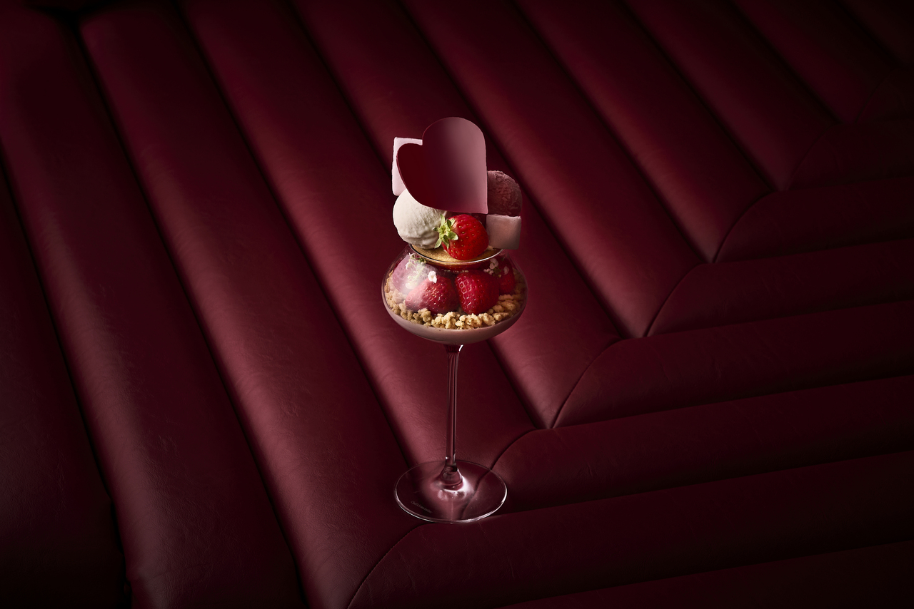 みずみずしいうるおいの世界観と、ストロベリースパをイメージした心ときめくムードを、洗練されたスイーツとセイヴォリーで表現しました。