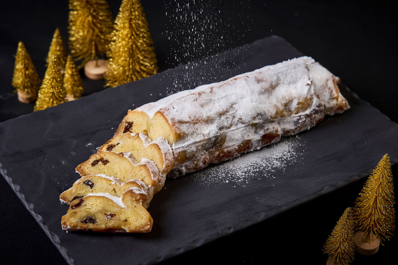 A traditional German Christmas sweet made generously with dried fruits and nuts and gently scented with rum. Enjoy it sliced little by little as you count down to Christmas.