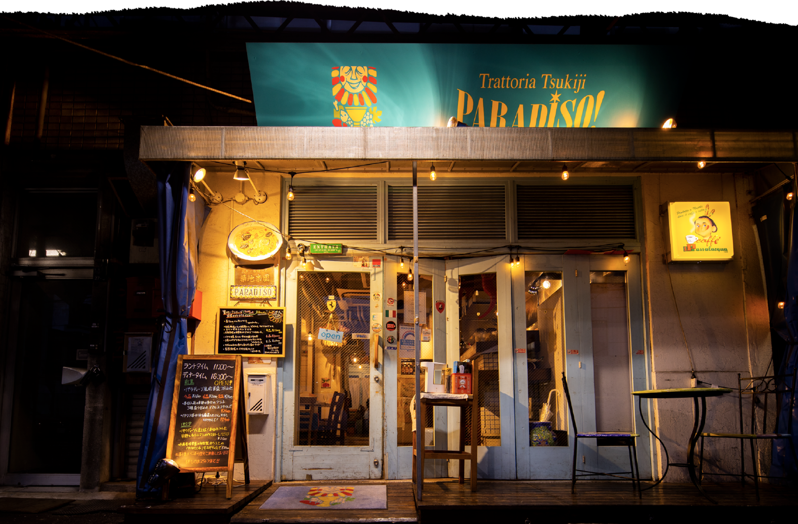 築地に佇む「トラットリア築地パラディーゾ」は、本格的なイタリア料理を提供するレストランです。季節の食材をふんだんに使った前菜や、オーダーを受けてから切る生ハム、アマルフィスタイルの魚介フリットなど、多彩なメニューをご用意しております。名物のパスタや炭火焼きのお肉料理も絶品です。その日に仕入れた新鮮な食材を使い、洗練された料理をお楽しみいただけます。ぜひ、一度足を運んでみてください。