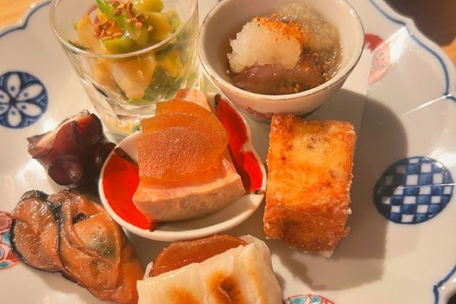 Restaurant with Japanese-modern style appearance, white noren (Japanese style shop curtains) and lattice windows.From the counter seats you can also see the open kitchen.Our dishes are created by a chef with experience in both Italian and French fields.They will be even more delicious with our high-grade sake and wine, selected just for them!