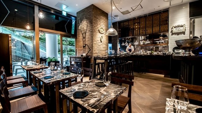 As soon as you step foot inside, you'll see chefs cooking nearby in our open kitchen. In addition to counter seats and tables surrounding the kitchen, we also provide terrace seats. Centered on classical French cuisine, we also offer high grade items like foie gras and truffles as easy to eat tapas-size dishes. Please make sure to try our luxury baked pies, with fillings that change each day.