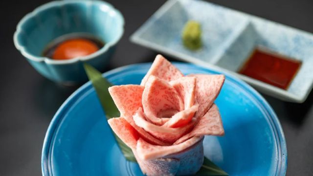 yakiniku in the relaxing atmosphere of a courtyard garden.