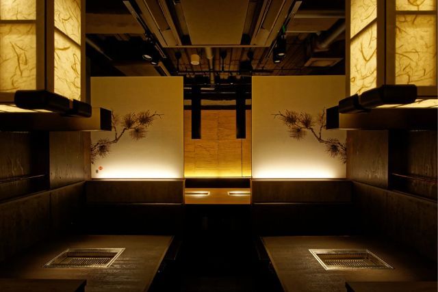 様々な飲食店が立ち並ぶこの界隈に、ジャパニーズモダンをテーマにしたシックな佇まいがひときわ目立ちます。一階から三階まで、団体のお客様にもゆったりと松阪牛焼肉を楽しんでいただけるよう個室もご用意。落ち着いた空間で松阪牛を存分に味わっていただけます。「シックな空間で最高峰の松阪牛焼肉をおもてなし」これが松阪牛焼肉M難波店のスタイルです。
