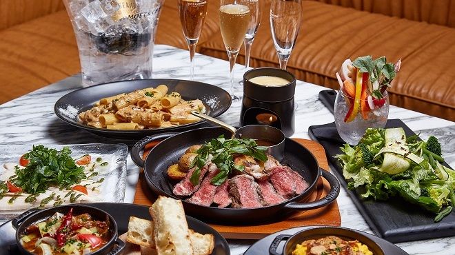MERCER BRUNCHの一番のオススメは、外はカリカリ、中はフワフワのブリオッシュフレンチトースト。 サラダもアボカドとサーモンのタルタルをはじめ、バリエーション豊富かつ量も多め、スパイシーチキンもカリカリでサラダと非常に合う組み合わせです。 ポーチドエッグもナイフを入れるとトロッととろける仕上がりとなっています。 しっかりお食事を楽しみたい方には、モーニングステーキという肉料理のメニューもご用意。また、お昼からシャンパンをお楽しみいただくことも可能です。