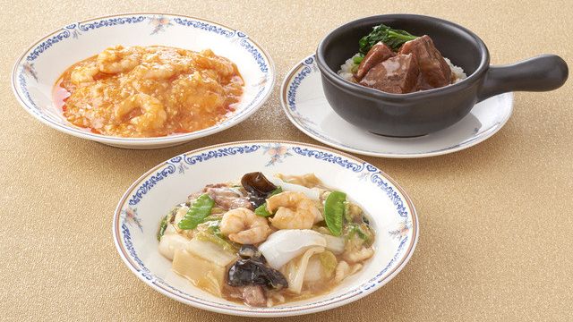 ・Assorted cold appetizer ・Dim Sum Selection of the Day - 5 kinds ・Braised shrimp in chili sauce ・Steamed glutinous rice wrapped in lotus leaf ・Almond jelly ・Chinese pastry