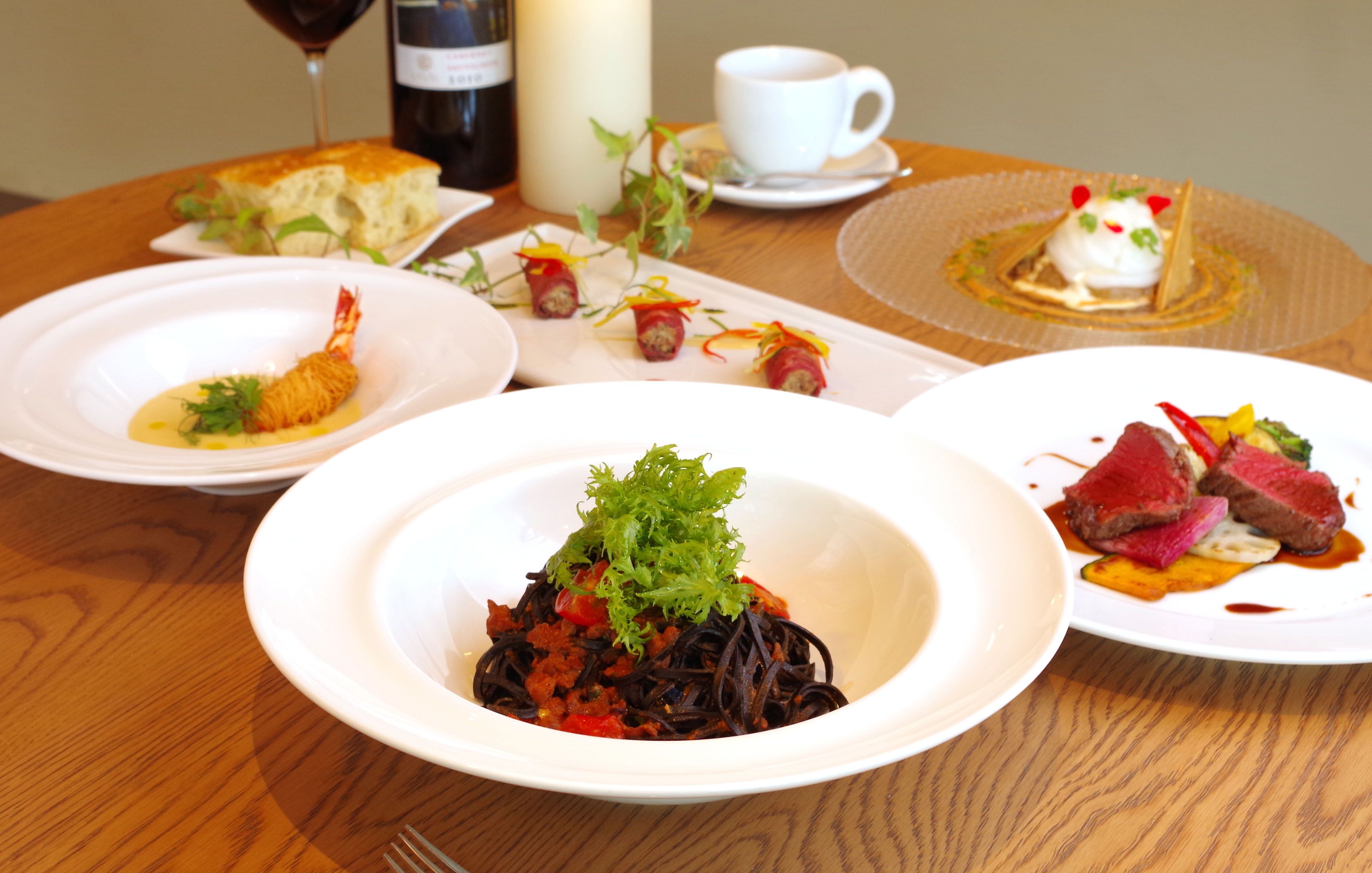 「前菜」「パスタ」「メイン」「デザート」の4つのカテゴリー、20種類におよぶバリエーション豊かな料理の中から、今の気分にあった品数と料理をお選びいただけるプリフィックスコースをご用意しております。たくさんの魅力的な料理からお好みのものをお選びいただく「迷う時間」を時にはスタッフを交えながらじっくりお楽しみください。気軽なアラカルトでのご注文も承ります。お食事と一緒に楽しめるワインも、グラス・ボトル問わず数多く取り揃えております。今夜を楽しむ準備を整えてお待ちしております。