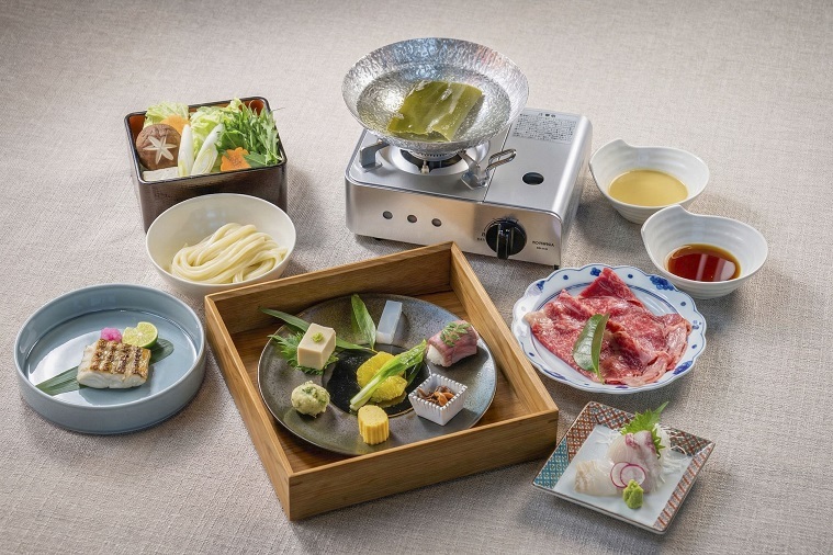 淡路牛ならではのやわらかな肉質と上品な甘みを楽しめるしゃぶしゃぶコース。だしにさっとくぐらせることで、肉の旨みがより一層引き立ち、野菜やうどんとともに贅沢なひとときをお過ごしいただけます。