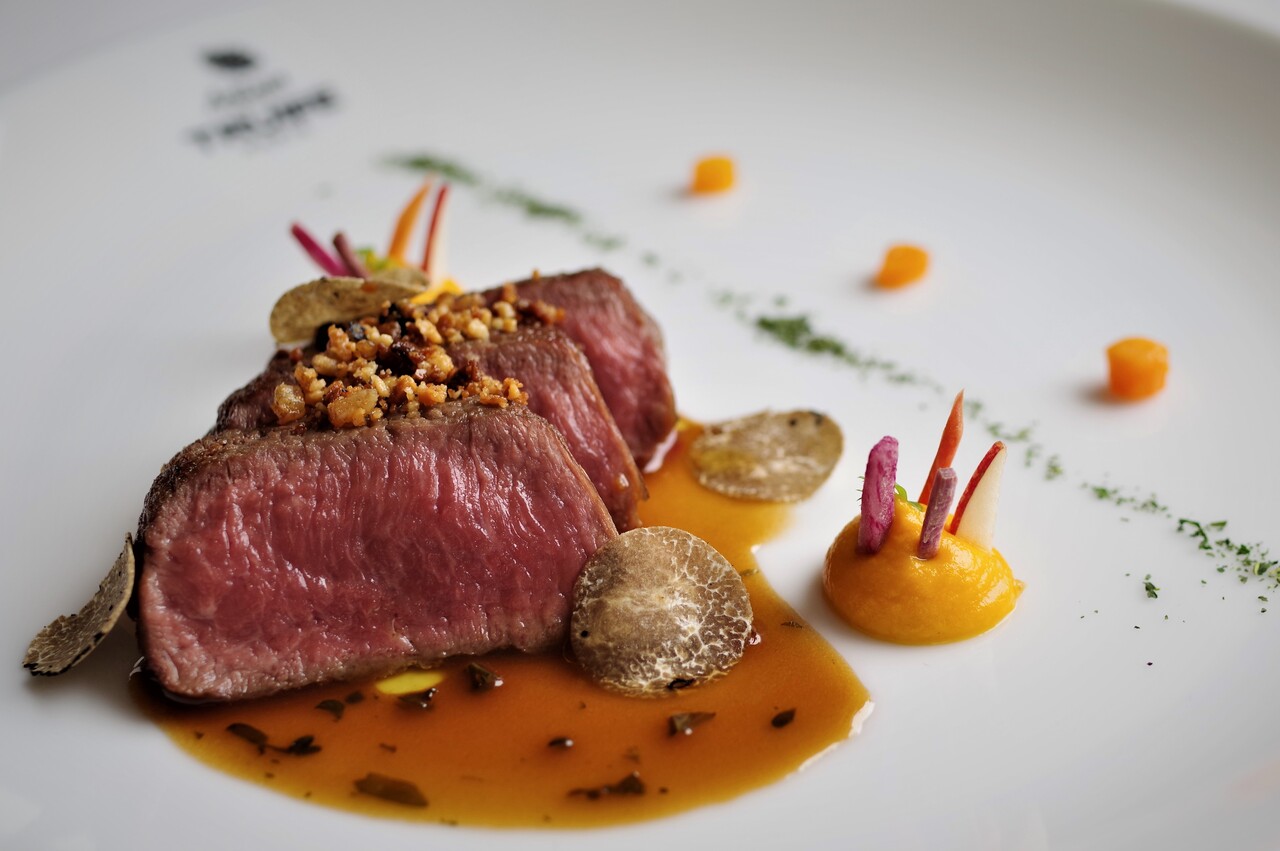 お料理はトリュフをふんだんに使用したフレンチで、アミューズ、前菜の後のメインはその日の気分に合わせて好きなものが選べます。デザート付きで1人1皿提供のコースで優雅にお楽しみ頂けます。
