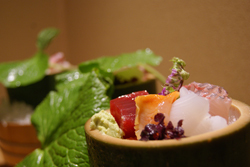 Appetizer (Assorted seasonal vegetables) / Clear Soup / Sashimi / Shinogi (Small rice or noodle dish) / Hot Pot / Rice Dish / Final Soup / Pickles / Seasonal Fruit