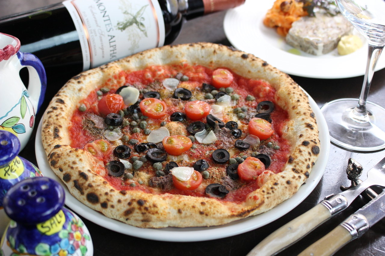 トマトソース + オレガノ + アンチョビ + オリーブ + ケイパー + プチトマト + にんにく
