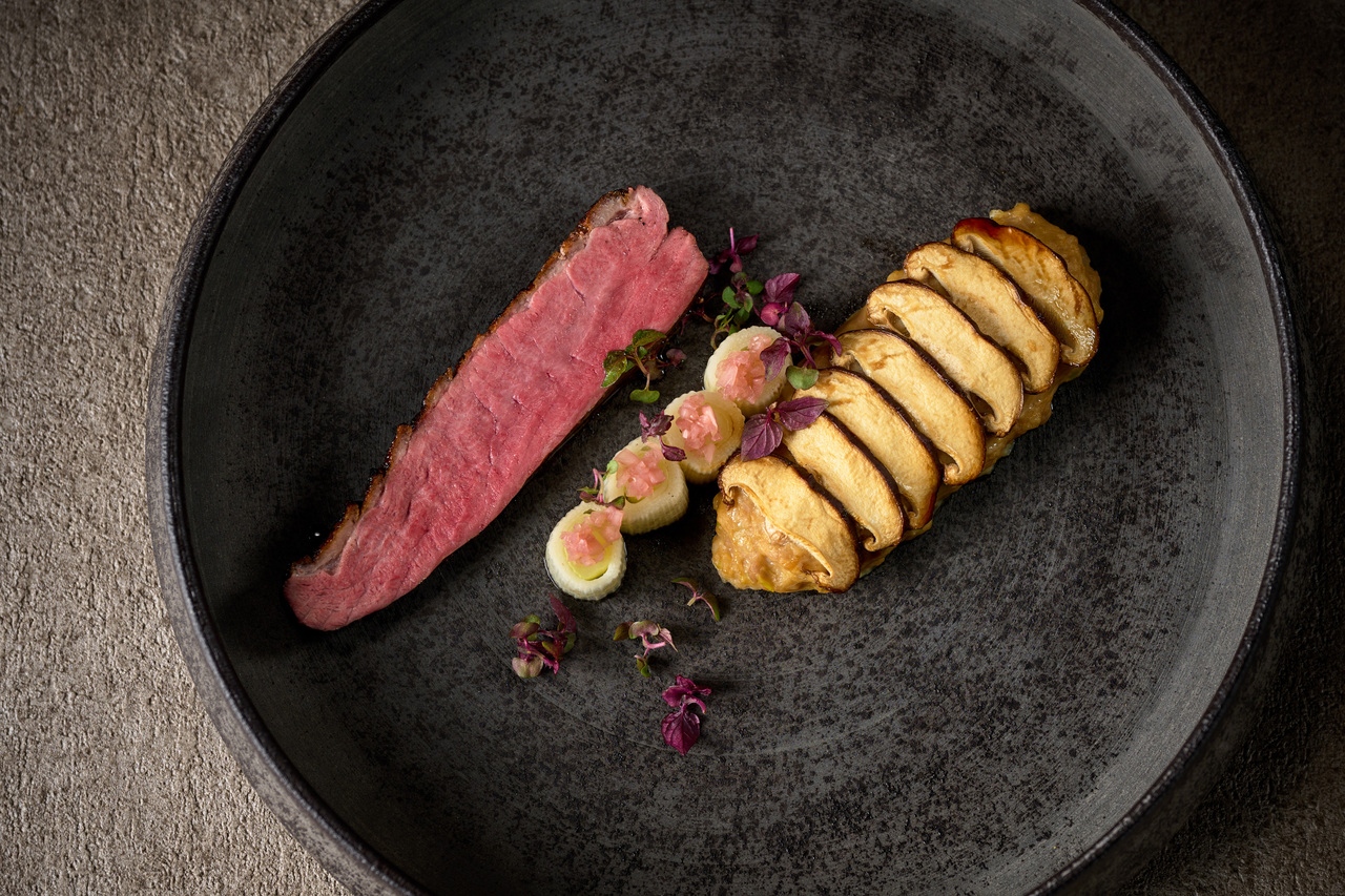 ■メイン「仙台牛フィレのロースト じゃがいものテリーヌ マッシュルームのピューレ スノートリュフ」