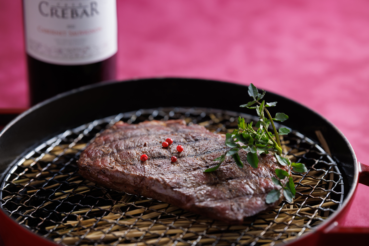 ・Grilled Japanese Beef Tenderloin with Périgueux Sauce, accompanied by Gratin Dauphinois