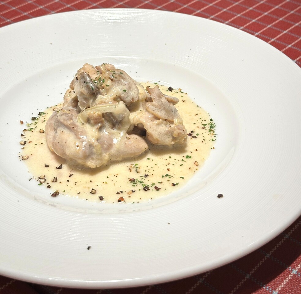 鶏肉と玉ねぎマッシュルームを生クリームで軽く煮込んだフランスの定番料理。