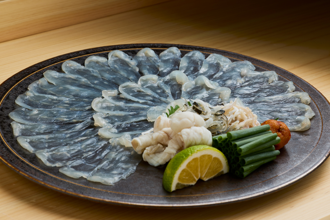 The translucent, thinly sliced pufferfish blooms beautifully like a chrysanthemum on a white porcelain plate. When gently lifted with chopsticks, it sways like a petal, and as you bring it to your mouth, the first thing you notice is its dignified purity. The more you chew, the more the subtle sweetness and refined umami emerge, and you'll be delighted with the taste.