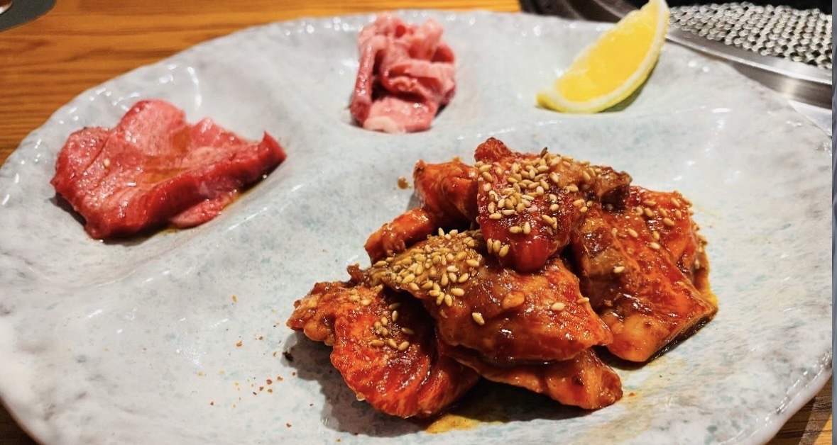 Classic yakiniku style: meat, sauce, and rice. Additional a la carte options are also available.