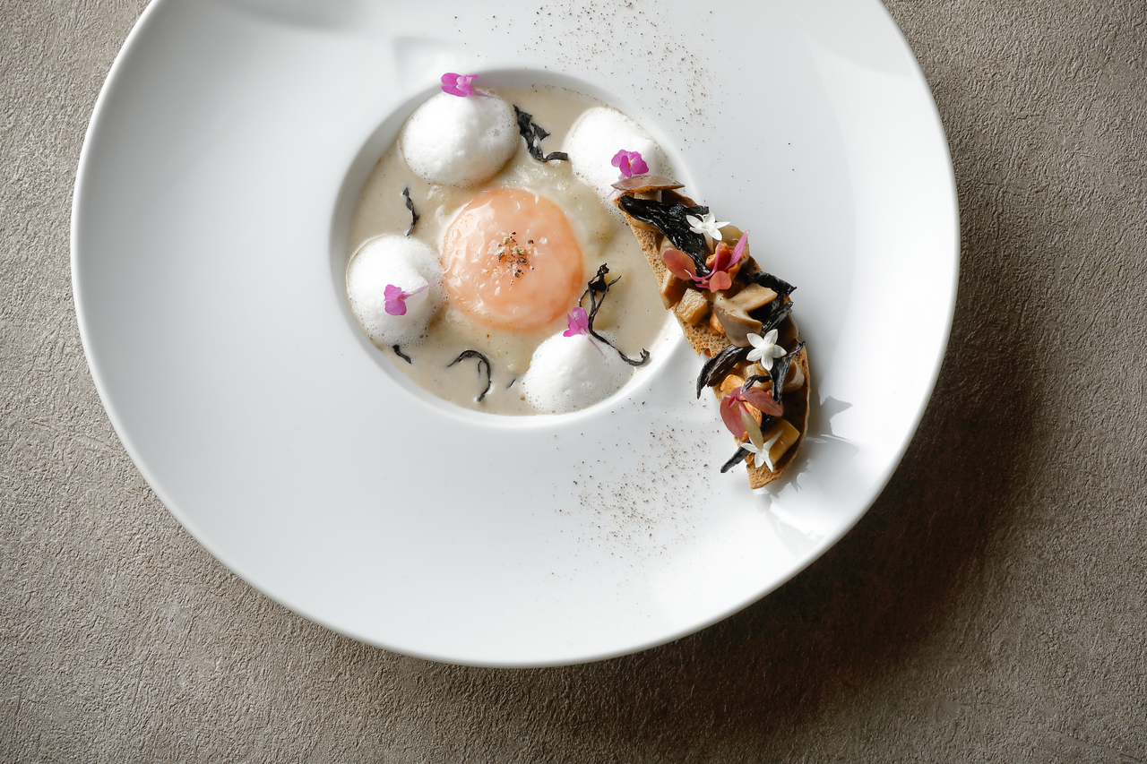 TENJIN serves up unconventional dishes of French cuisine that explore the themes of nature, art, and cuisine. Taking an approach that pays homage to local history, each dish expresses a unique story or incorporates an aspect of Kyoto culture, all served in a dining environment that seamlessly integrates the breathtaking natural beauty of Takagamine.
