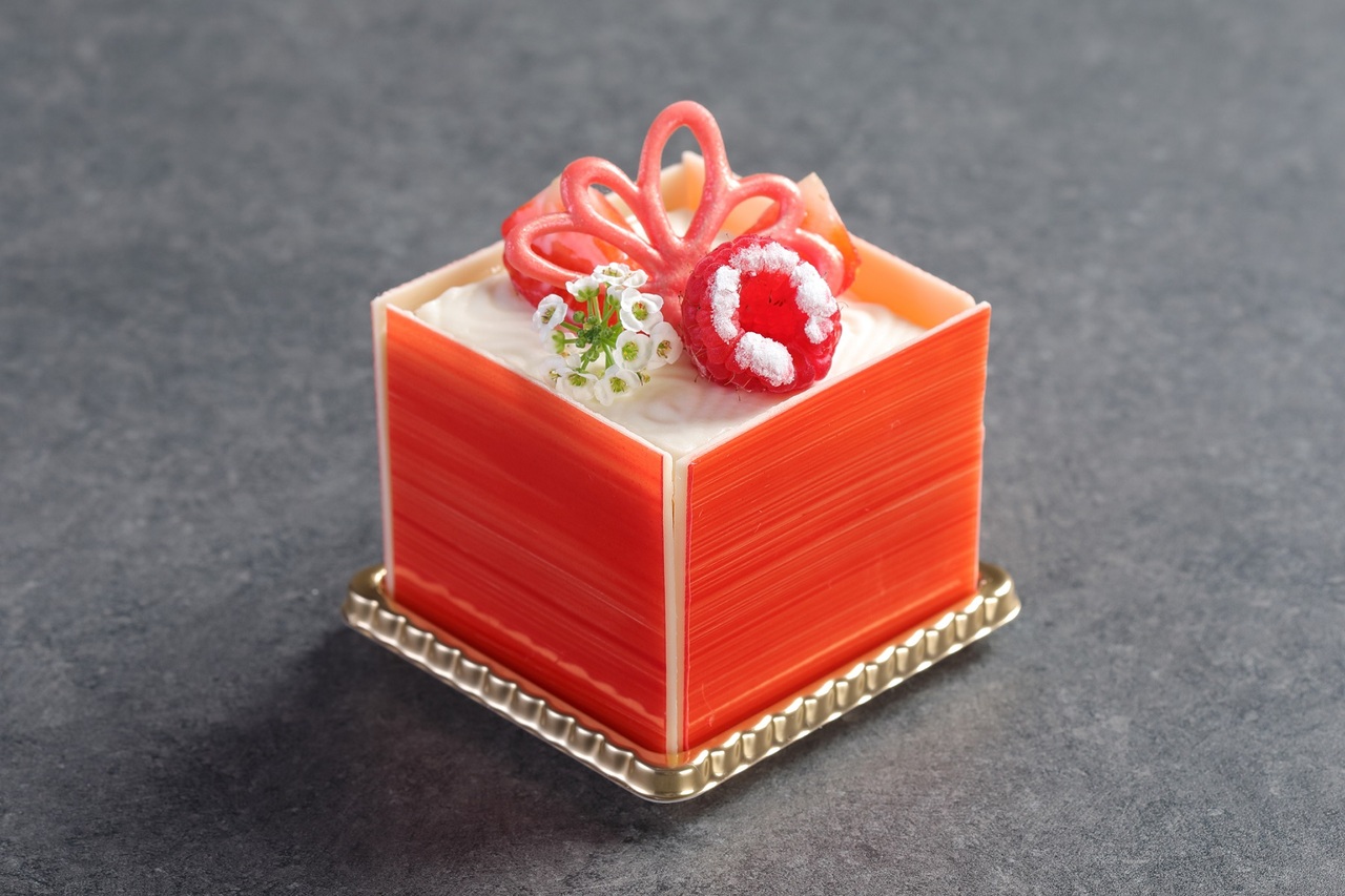 「干支スイーツ ~午~」は、チョコレートで白馬を表現した、メルヘンチックなパステルピンクのムースケーキです。ライチのムースとジュレを甘酸っぱいいちごのムースで包み込み、さっぱりとした味わいに仕上げています。ご家族やご親戚が集まる新年の食卓に、お正月の手土産におすすめのスイーツです。