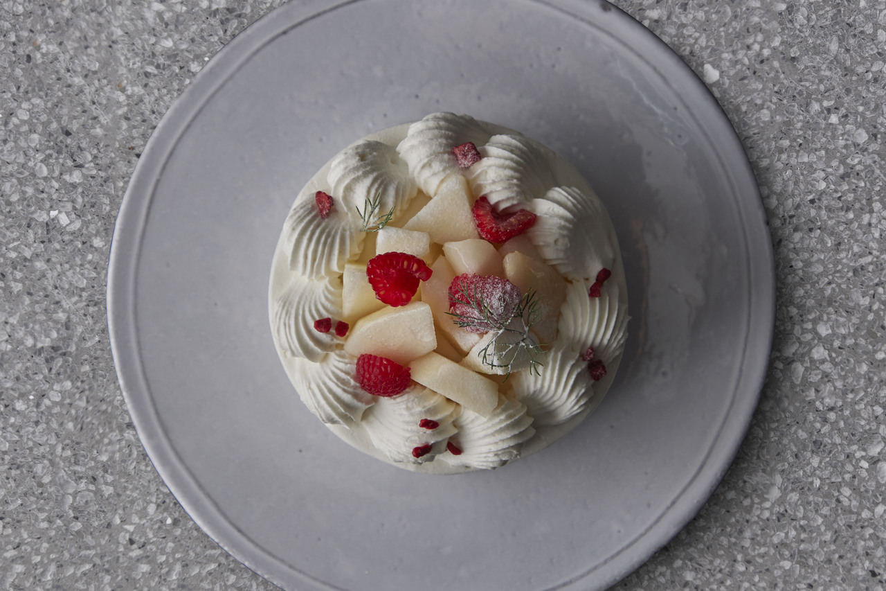 聖夜に降り積もった真っ白な雪面に、真っ赤な苺の光が降り注ぎます。溢れんばかりのフレッシュの苺と苺のコンポートをサンドしました。しっとりとしたジェノワーズとマダガスカル産バニラシャンティとの相性は王道の味わいです。