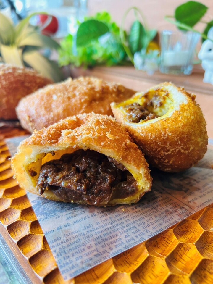 牛すじがゴロっと入った食べごたえのある贅沢カレーパン!