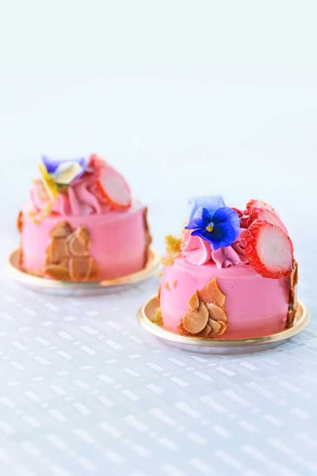 苺とバニラのムースの中に触感を残した濃厚な苺のジュレが隠れています。