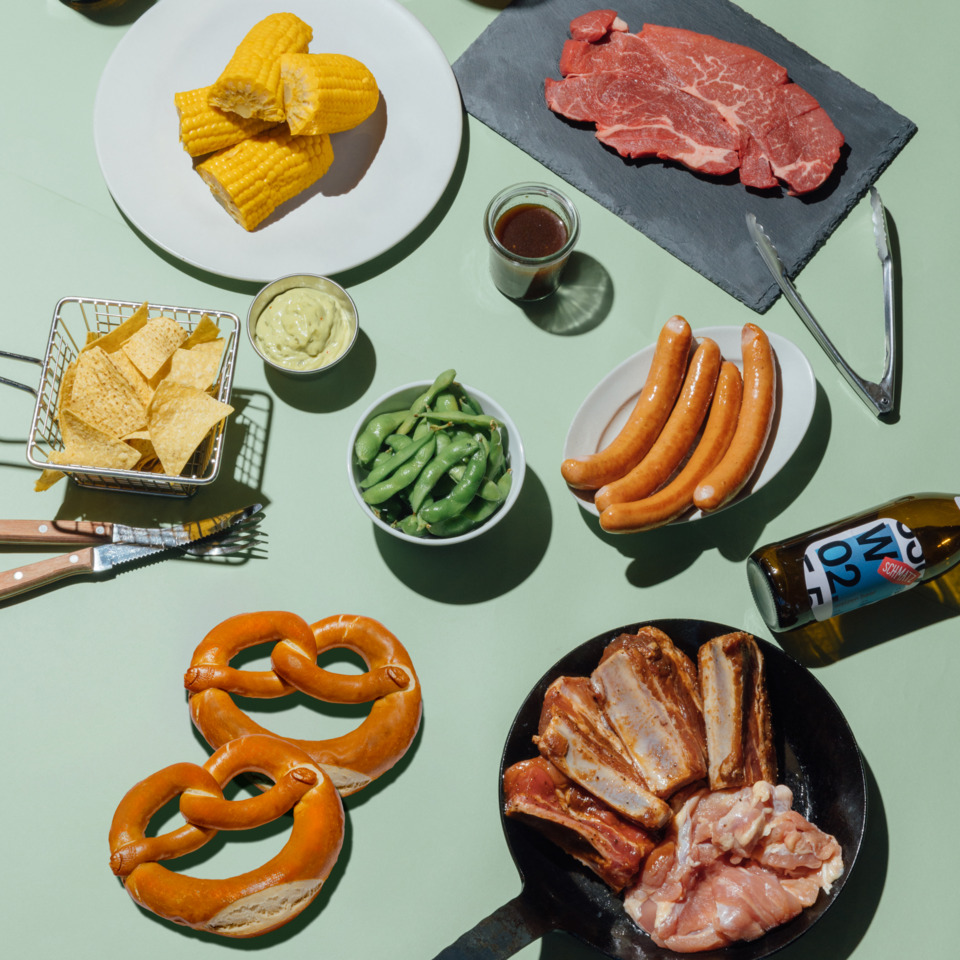 [Содержание курса] ■Эдамаме ■Чипсы из тортильи ~Гуакамоле~ ■Тако-набор ■Различные овощи на гриле (паприка, цуккини, кукуруза) ■Специальные колбаски ■Куриные бедра ■Ребрышки ■Корейка говяжьей лопатки