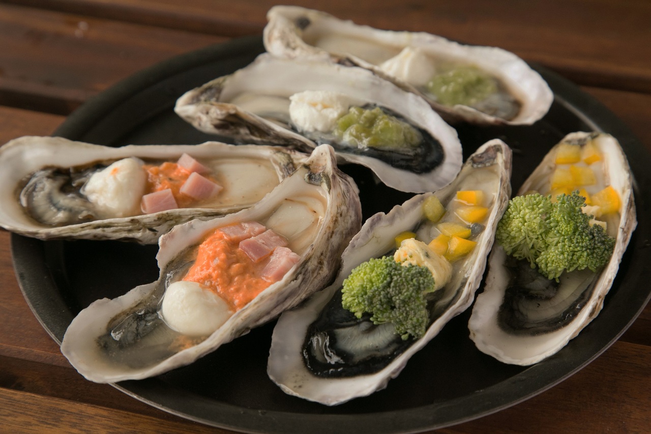 ・グリルドオイスター3種(カプレーゼ、ガーリック、わさび醤油)