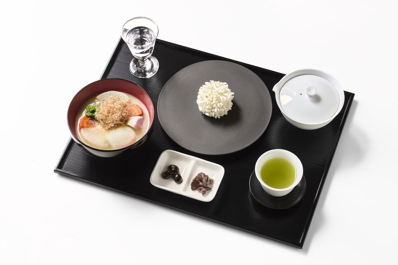 丸餅の入った、白味噌仕立てのお雑煮をTORAYA GINZA限定のセットでお楽しみいただけます。