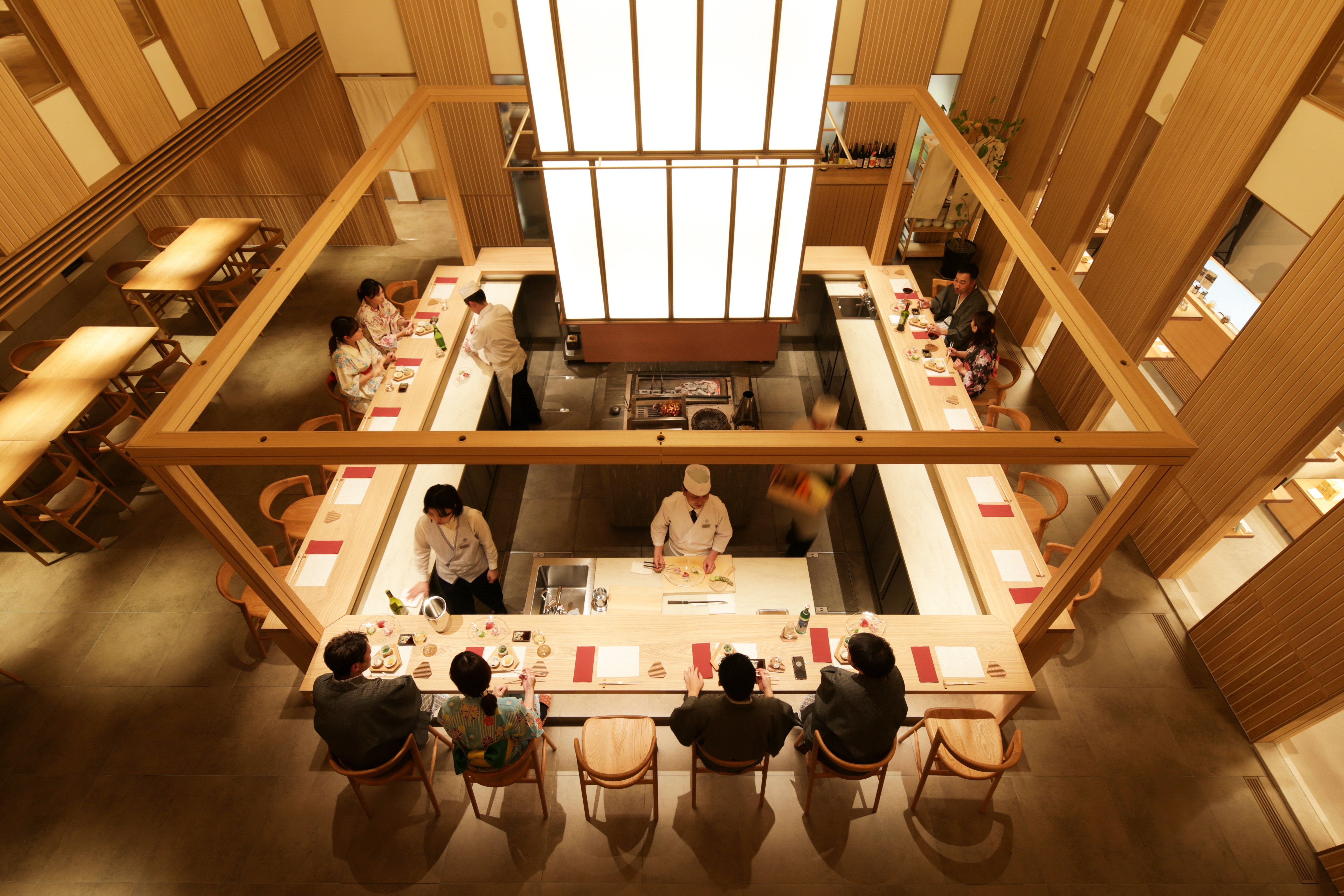 Restaurant located in Kinosaki hot springs.In the middle of the open ceiling dining space you will find an open hearth, where a chef will serve dishes cooked with the charcoal fire in front of your eyes. Experience the charcoal's aroma and our chef's techniques applied on local products grown near our venue.