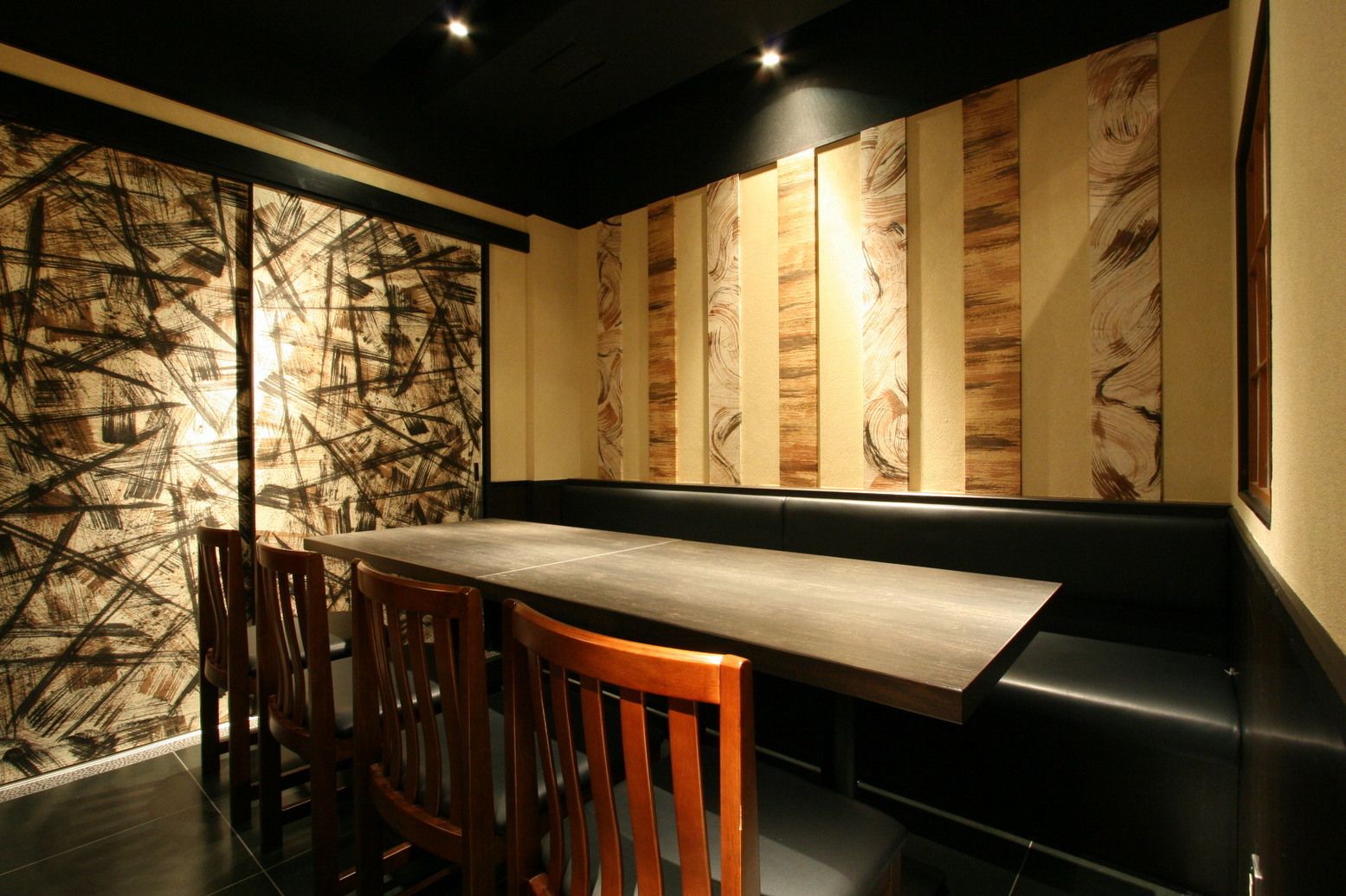 Izakaya with all private rooms with doors. Perfect for various occasions. There is a bigger room that can accommodate up to 80 people. Dishes such as Iberico pork shabu shabu and grilled black pork are on the menu. A set course menu for parties with 2hrs of all you-can-drink beverages is also available.
