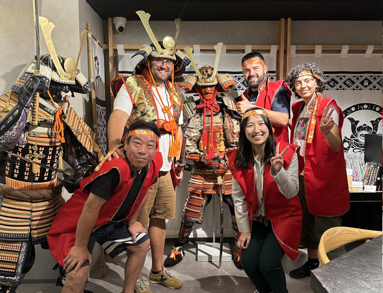 JIN-ASAKUSA brings the Warring States period to life with armor, helmets, torches, and swords. Guests can dress as samurai and step into history. Enjoy the chef’s live shows with nigiri sushi, futomaki, and dashi-maki demonstrations, plus a fun sushi challenge. The course is in English with Japanese support, and Chinese and Korean subtitles are available.