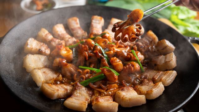 本格的な韓国空間で味わえる、名物のチュクミサムギョプサルと生マッコリ