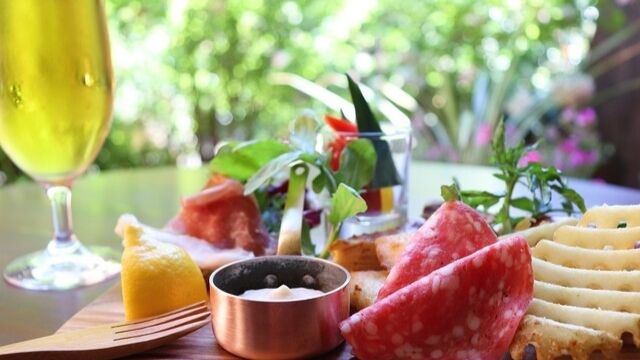 開放感のある店内からは、季節の花や教会のステンドグラスが見える庭園を眺められます。地元の食材をふんだんに使ったメニューをご用意。ワンプレートランチやパスタ、キッシュといったフレンチをご堪能いただけます。キッシュのテイクアウトも準備しておりますので、ご家庭でもお店の味をお楽しみください。料理と一緒に楽しめるビールやワイン、ノンアルコールドリンクなどを豊富にご用意しています。