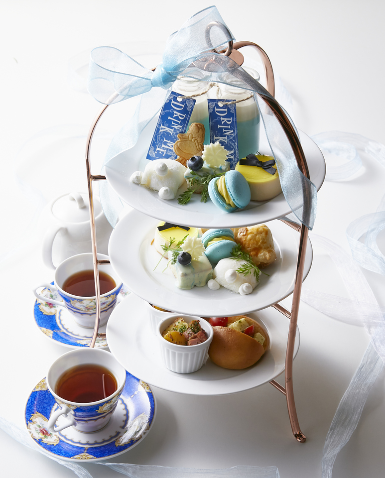 幻想の国のアリス特製アフタヌーンティー『なんでもない日のティーパーティースタンド』不思議の国のアリスに登場するキャラクター達をモチーフにした、自家製のセイボリーやデザートをご用意しております!!なんでもない日をお祝いする、風変わりなお茶会をお楽しみくださいませ♪