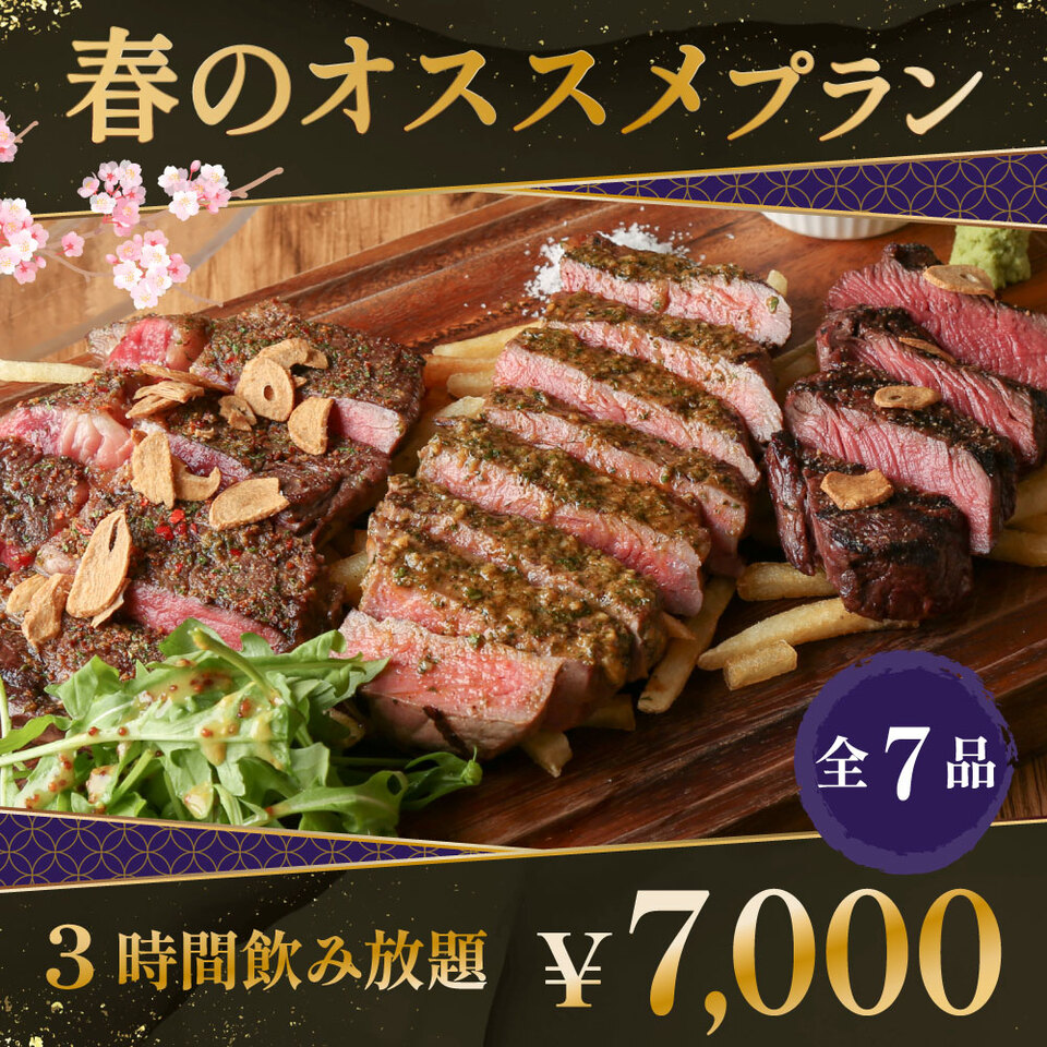 4/13~歓送迎会にオススメプラン‼人気メニュー特盛コース♪》季節の前菜3種やカルパッチョ、豪華お肉料理盛り合わせにガーリックライス付き全7品【ゆっくり3時間飲み放題付き】お一人様7,000円